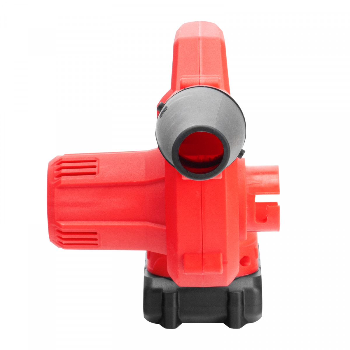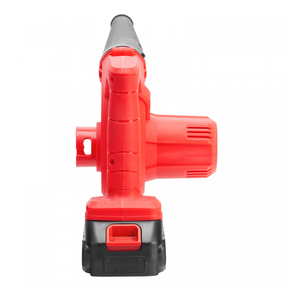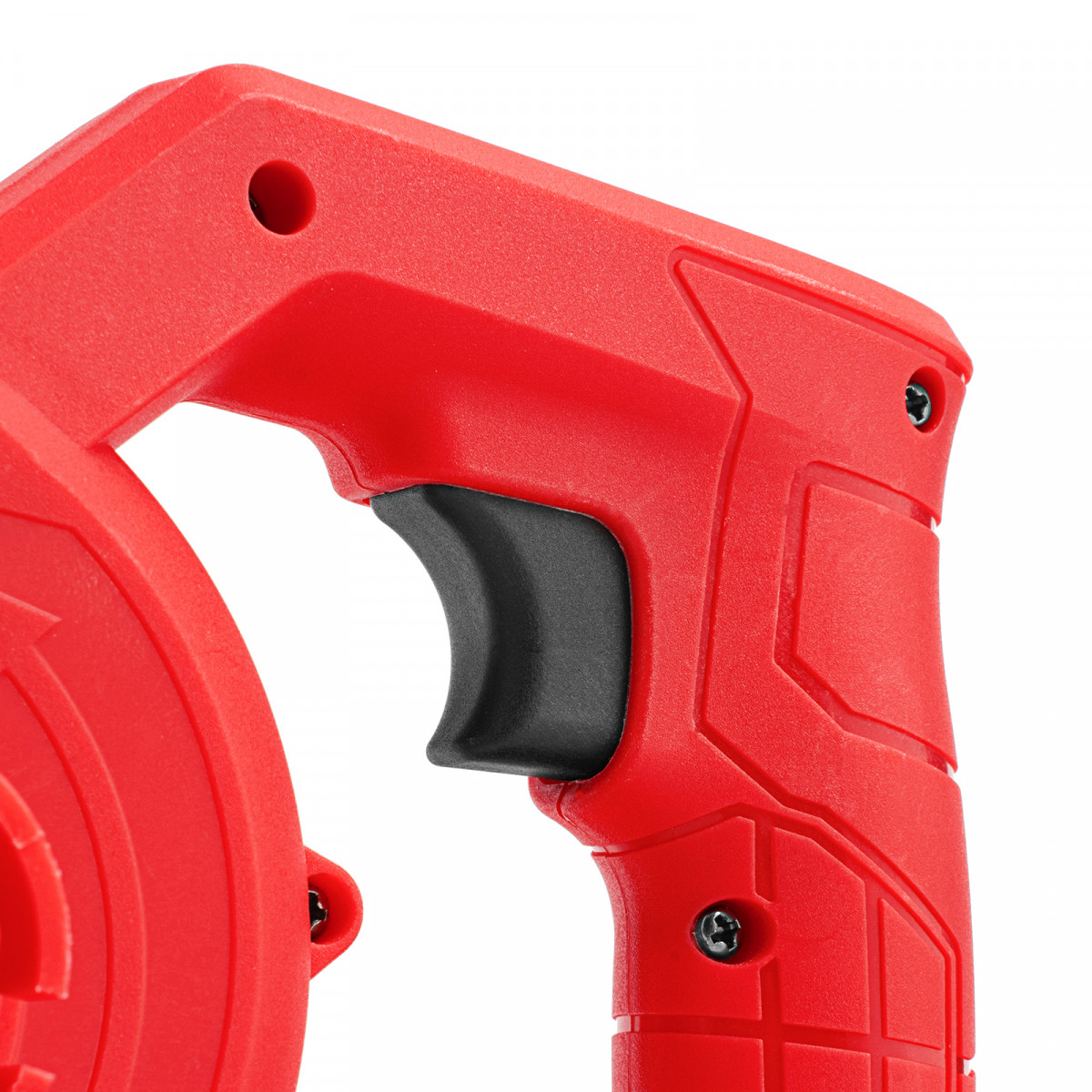 • Компактность и малый вес — размеры воздуходувки в сборе составляют 500 x 140 x 180 мм, масса с аккумулятором — 1 кг, поэтому работать с инструментом комфортно.