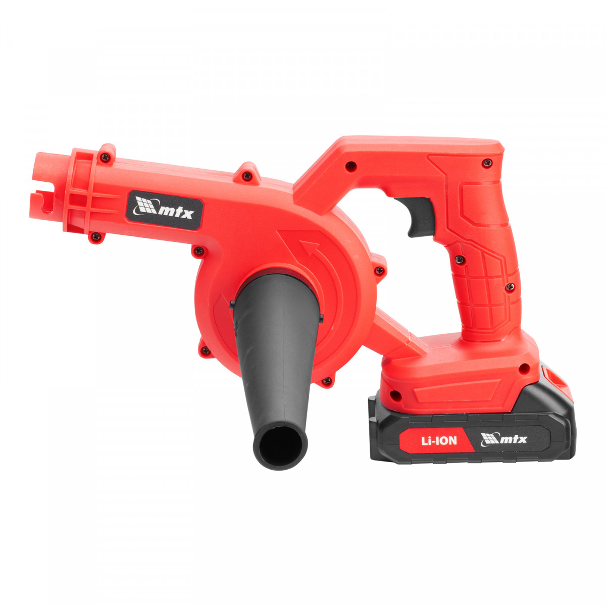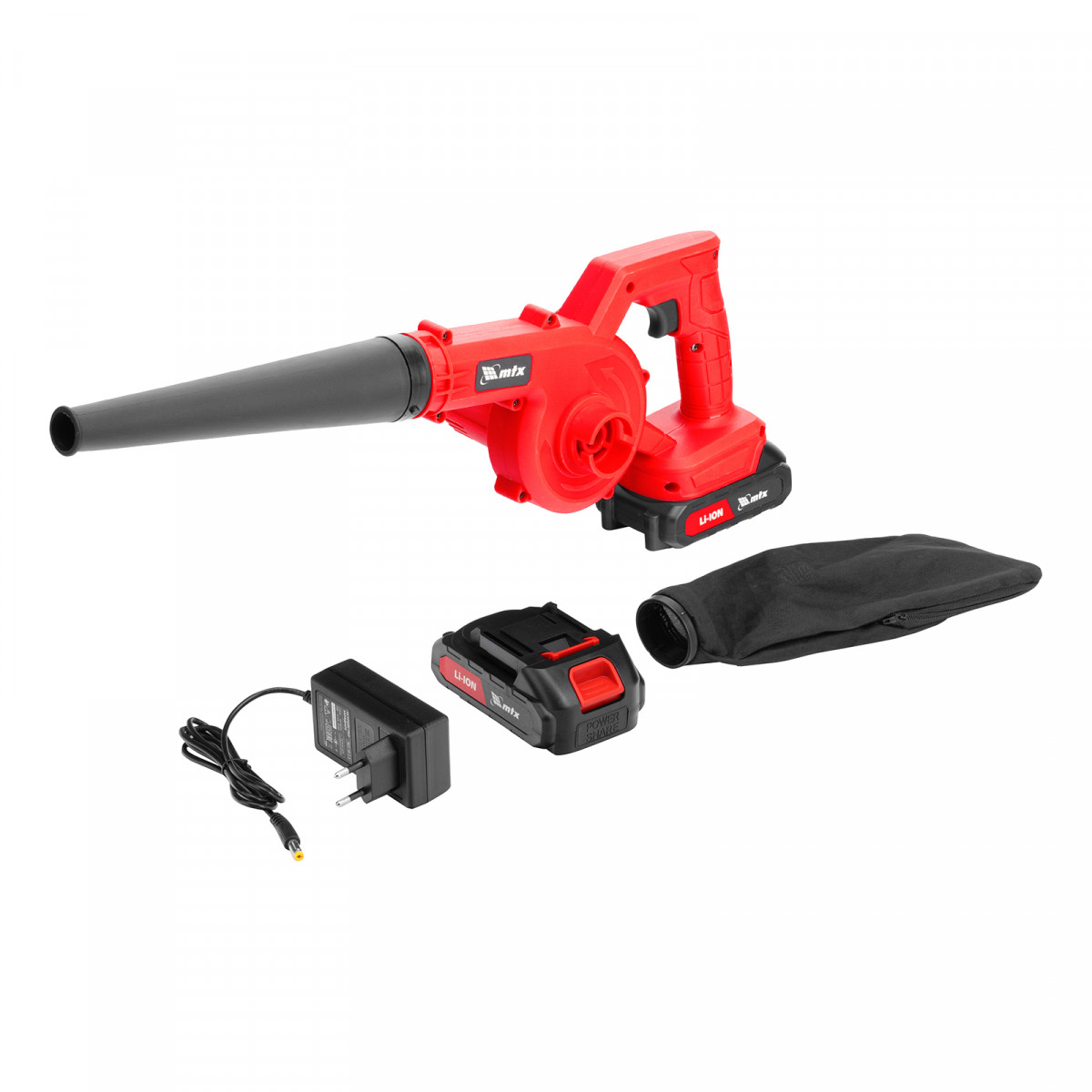 Портативная аккумуляторная воздуходувка-пылесос MTX LB-185 59620 работает от аккумулятора 20 В емкостью 2 А·ч и позволяет очистить тропинки, подъездные дорожки, территорию около дома при помощи потока воздуха 170 м³/ч, подаваемого со скоростью 35 м/с. С помощью воздуходувки можно убрать мусор, срезанную траву, опавшую листву. Функция пылесоса расширяет возможности инструмента — в этом режиме воздуходувка работает в режиме всасывания и собирает мусор в мешок объемом 0,5 л. Инструмент оптимален для бытового использования на дачном участке.